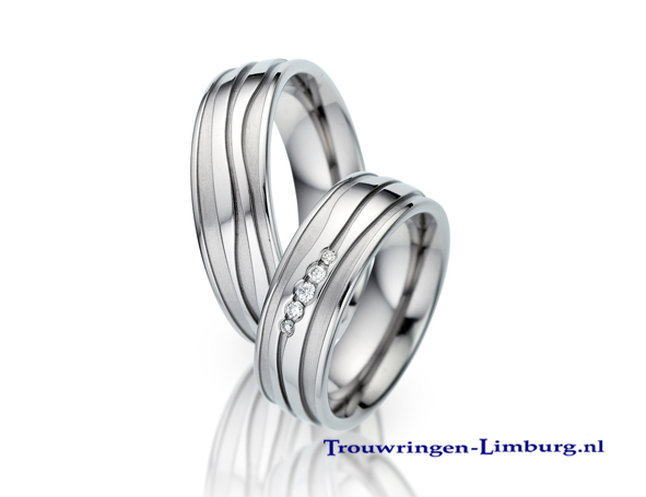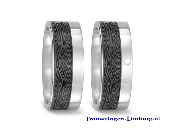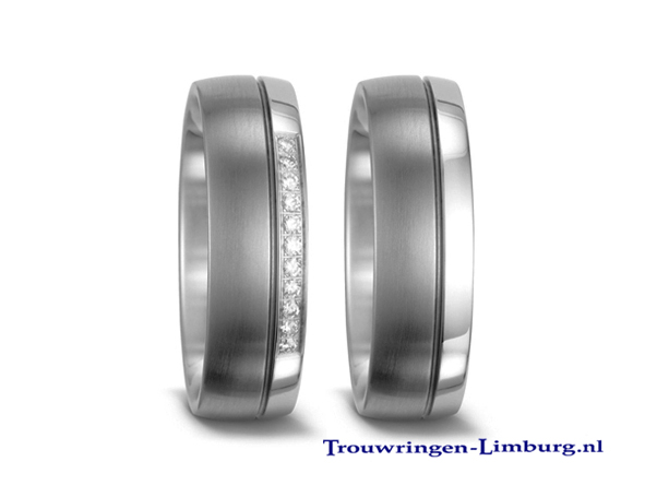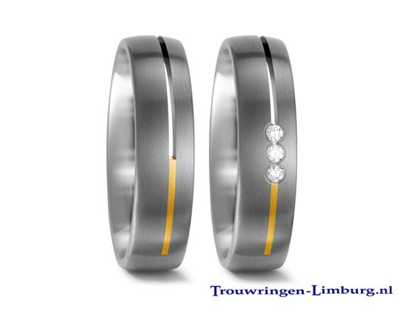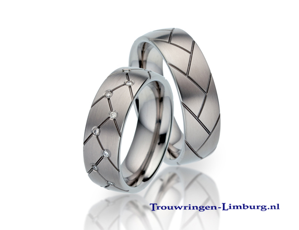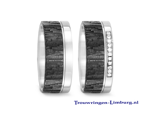 Je kan kiezen uit ringen uit alleen titanium, of ringen gecombineerd met goud of carbon en schitterende briljanten. Het zijn contrastrijke sieraden die onvergankelijk zijn.